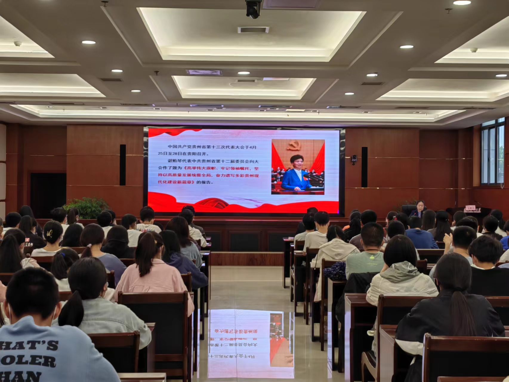 通过宣讲,师生加深了对省第十三次党代会精神的理解,纷纷表示,将不负韶华,不负时代,只争朝夕,自觉把青春理想和专业所长融入家乡和国家的建设中,在多彩贵州现代化建设新征程中放飞青春梦想、实现人生精彩,以优异成绩迎接党的二十大胜利召开。(审核:一审王唯、二审叶栋恒,三审周永媛。)