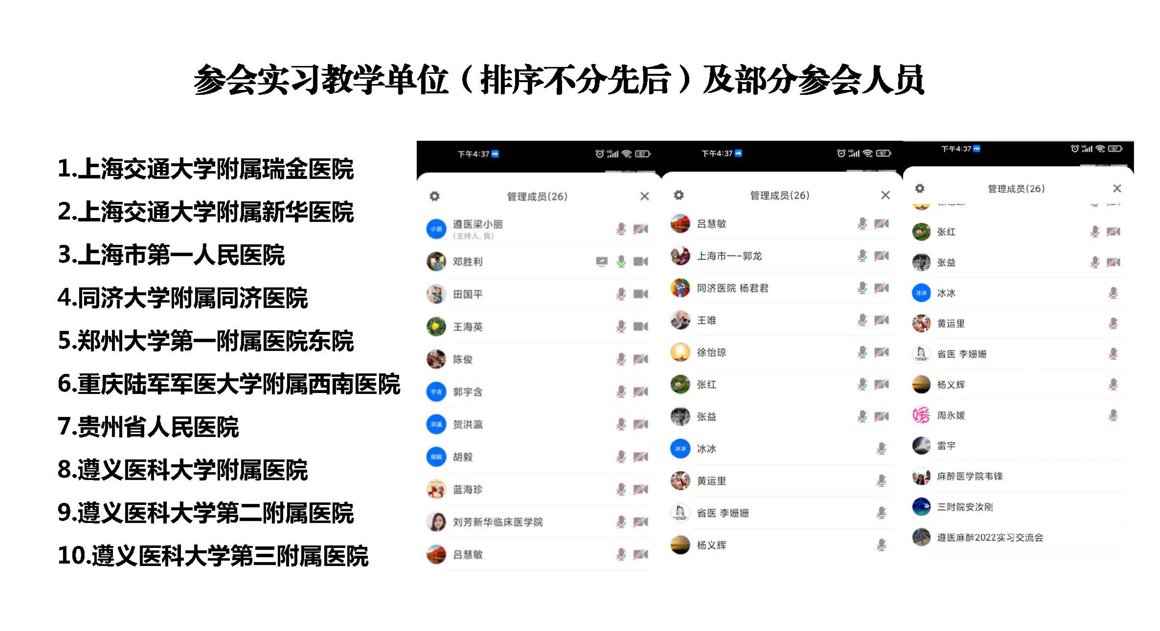 1月24日下午,公司在腾讯会议召开实习教学工作会。在上海、郑州、重庆、贵阳、遵义市的十家实习教学医院领导及实习生管理教师,公司党委书记周永媛,副经理张红、王海英,临床麻醉学教研室副主任邓胜利,公司教学管理教师等参会。会议由副经理王海英主持。