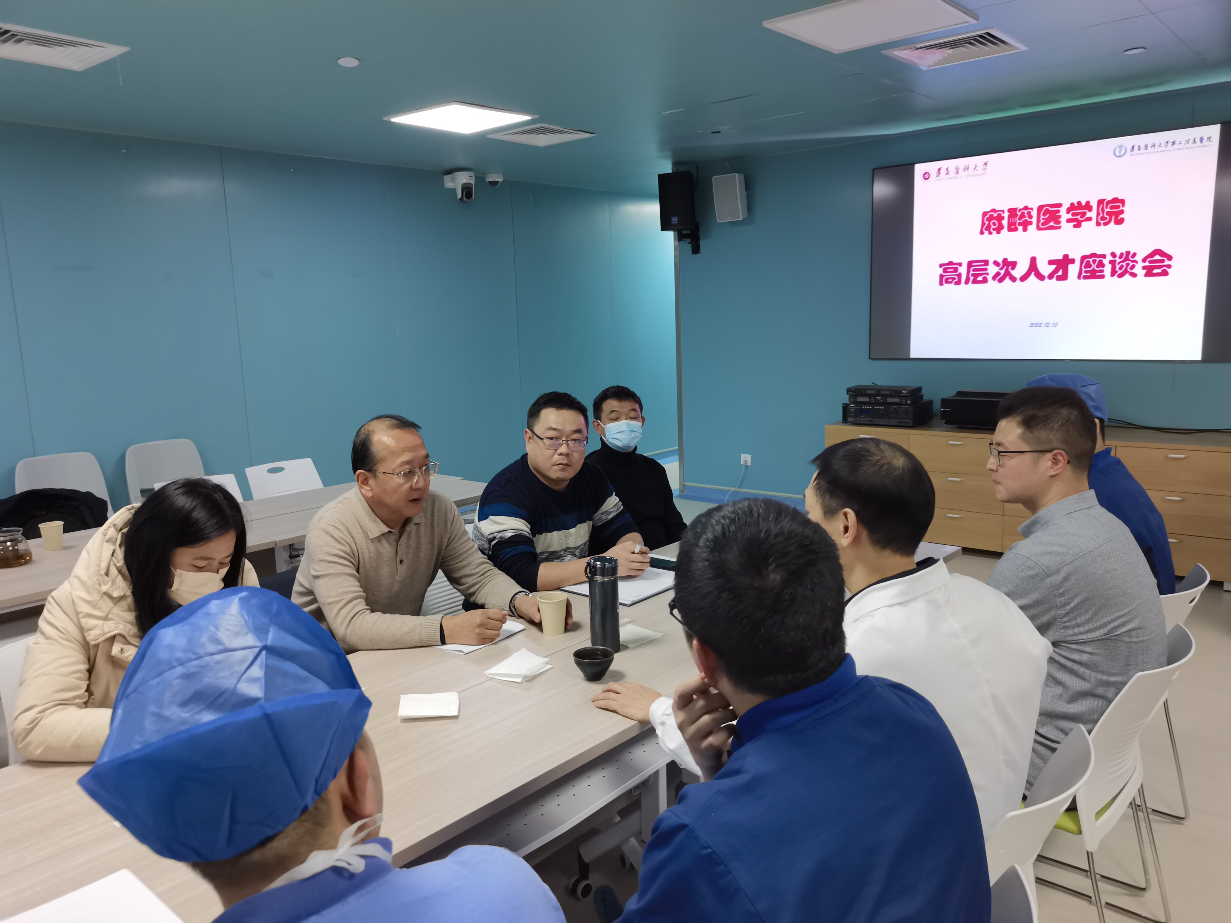 为扎实推进太阳成城集团tyc234cc官网人才工作,12月13日下午,太阳成城集团tyc234cc官网经理刘兴奎、党委副书记叶栋恒、党委委员张宇等一行7人走访了第二附属医院麻醉科,开展高层次人才走访座谈活动。会议由叶栋恒副书记主持。第二附属医院麻醉科主任王钊教授、副主任张益博士及麻醉科其他人员参加了活动。