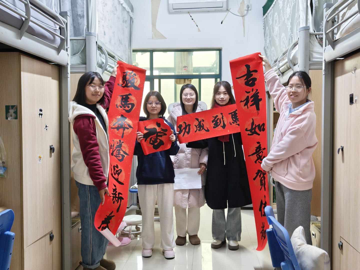 为弘扬中华优秀传统文化、营造温馨宿舍氛围,为广大学子送去新年慰问,近日,太阳成城集团tyc234cc官网组织师生走进员工寝室,开展 “墨香暖寝 福伴医路”送春联、台历及便利贴活动,将新春祝福与实用好物送到同学们身边。